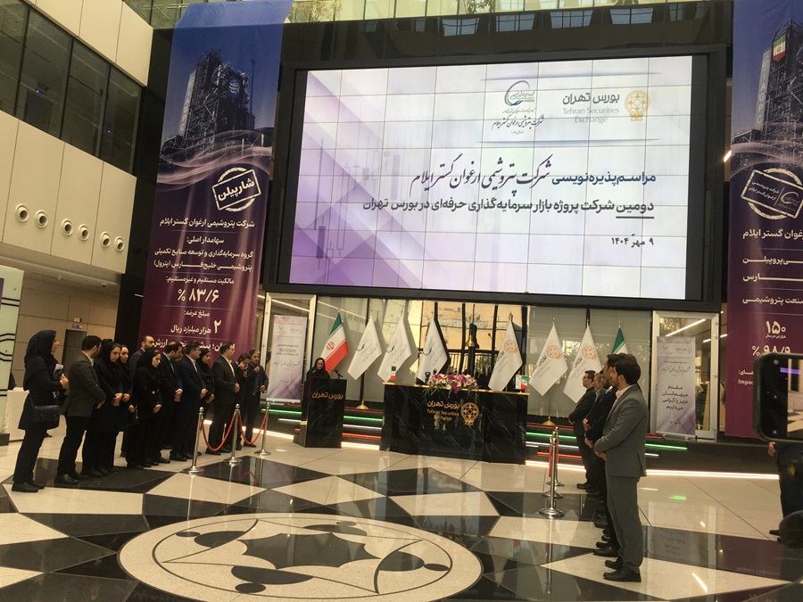 به گزارش خبرنگار بازار انرژی ظهر امروز 9 مهرماه 1404 آیین پذیره نویسی سهام شرکت پتروشیمی ارغوان گستر ایلام در محل بورس تهران برگزار شد و این شرکت دومین شرکت پروژه بازار سرمایه گذاری حرفه ای در بورس تهران است.